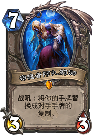 而“窃魂者阿扎莉娜”则是一张中立传说牌,它可以将你的手牌替换成对手手牌的复制。是不是非常有意思呢?