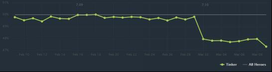 激光和魂戒的削弱让修补匠在前期的威胁下降了很多。和其他一些在7.10遭到削弱的“问题人物”相比,修补匠则是全方位的被削弱了。