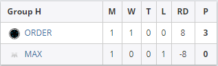 H组同之前的E组,剩余队伍也是因为两支队伍的退赛而自动晋级。ORDER和MAX的荣誉之战在Nuke上打响,先手CT方的MAX赢下手枪局后没能鼓足勇气,进攻方下一局完成翻盘,之后仅仅打出几波外场同步CT方都没能挡下,最终MAX以8:16的比分输掉。