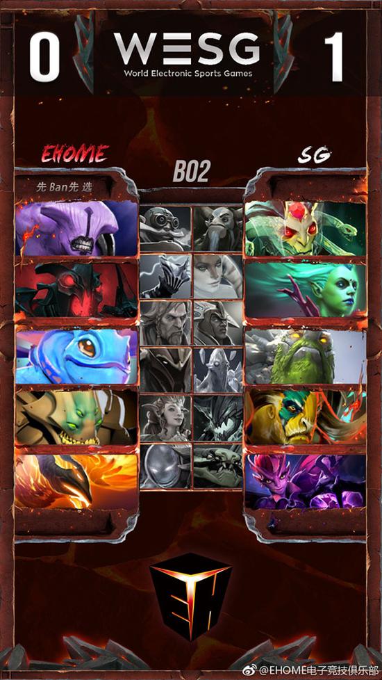 双方第二场比赛几乎就是第一局的翻版,Ehome影魔、虚空双大哥前中期稳健发育,经济始终排在前列。但是SG的美杜莎、死亡先知和小小的三核体系在随着装备成型后开始发力,Ehome正面再无接团能力,0-2被对手击败。