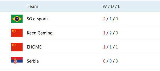 结果KG战队最终以小组第二名晋级八强,而赛前被普遍看好是夺冠热门的Ehome战队却惨遭淘汰。本小组头名是来自巴西的劲旅SG。