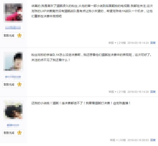 龙珠最近办了场吃鸡比赛LKP,几乎把国内的队伍邀请了个遍。这么多战队所以比赛看着确实挺精彩的,不过前几天复活赛出了点尴尬的状况。本身应该毫无悬念晋级决赛的1k,结果竟然没能晋级。直接被pass在了复活赛上。当时看复活赛的时候简直蓝瘦!说好的1K决赛圈见呢?这倒在复活赛上是怎么回事?我宇宙队还没发挥啊?就这么被淘汰实在是太让粉丝憋屈了。这下大量1K的粉丝和观众不干了,转身就跑到龙珠的官方贴吧下面吐槽: