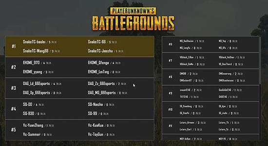 五场战罢,SnakeTC豪取40杀霸榜积分榜第一,OMG凭借高级杀吃鸡排名第二,而另外两支吃鸡队伍Lstars和AG发挥并不稳定,分列排名榜第7和第8名。