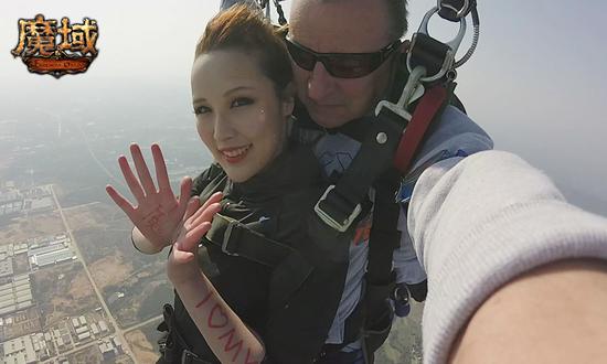 而现场出现人气主播祭理和金夏的身影,也是让挑战别有一番风味。相信许多《魔域》玩家早已认识女神冠军主播“祭理”,并对她直播中动不动的神来之语拍手叫好。而面对极限挑战,曾经在直播视频间特别活跃的祭理一反常态,一直到登机以及跳伞开始前的数分钟,都全程保持高度紧张,变得非常安静。 同比“女神”祭理的一反常态,美女主播金夏战前还夸下海口称“跳伞没什么”,当真正面临挑战时,也是紧张连连。可见飞天挑战对她们来说,的确有难度——但是她们同样挑战成功,在4000米高空成功做出手势舞,这也许是海拔最高的“手势舞”了吧!