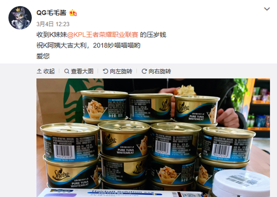KPL王者荣耀职业联赛官微小姐姐,为毛毛酱送来新年礼物,毛毛酱已经快冲出QGhappy,成为整个KPL圈圈宠了,连王思聪的可可怕是也没有这个待遇。