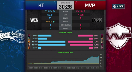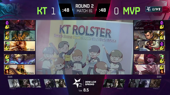 2018年3月20日,英雄联盟LCK联赛KT遭遇MVP。最终,KT 2-0轻松击败MVP,锁定常规赛前三。