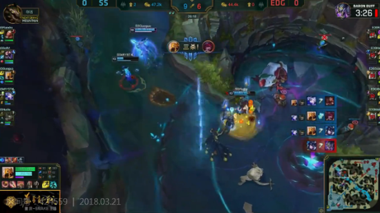 后期,Snake在上路击杀EDG三人,随后轻松破掉上路水晶后经济领先已经近10000。最终,后期阵容的Snake没有给EDG机会轻松的拿下第一局。