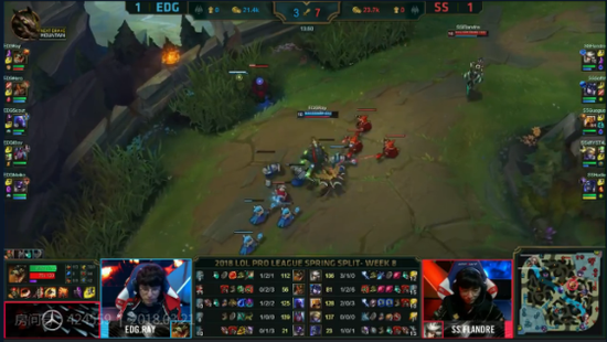 中期EDG利用自己的转线节奏拿到了一血塔,但是猪妹的节奏比皇子好太多了,在猪妹的帮助下沙皇也拿到了三个人头。