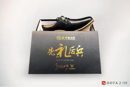 光鲜的牛皮皮鞋已被装在DAC专属礼盒中静候您的领取。烫金的Yang神签名印刻在礼盒之上,而礼盒正中间四个大字“先礼后兵”则是属于Yang神的DAC主场明星关键词。