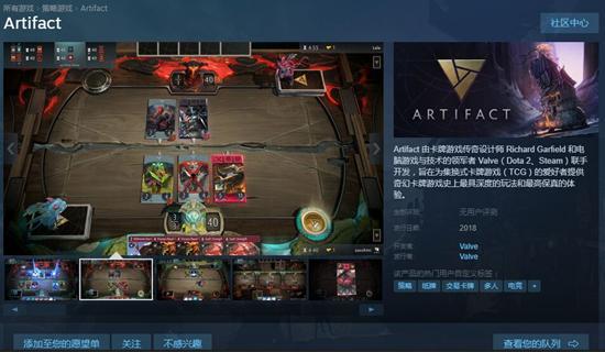 今天我们惊喜的发现,万众期待的DOTA2卡牌游戏Artifact 现已加入Steam商店,通过Artifact在之前曝光的游戏界面和视频,Artifact是一款有着独特游戏模式的对战卡牌游戏,其核心玩法与DOTA理念相同,操作英雄,购买装备,三条兵线。首发的Artifact将会有280多张独立的卡牌,44个英雄当中还疑似存在DOTA2中部分英雄台词中出现的新英雄。同时Artifact还将支持简体中文、字幕和音频,对中国玩家来说是最好不过的事情了。