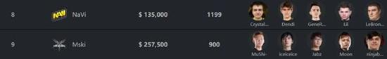 前VP战队的队员Lil的加入给NAVI战队带来了大量的TI积分使他们一举进入了前8的位置,并获得了许多的直接邀请。但显然他们在各大赛事上的表现都让人觉得不为满意,在ESL ONE卡兹维托上他们不幸吊车尾,PGL上也早早得被淘汰,现在他们以1199的积分暂居积分榜第8,领先第九的900分的MsKi,位置岌岌可危。