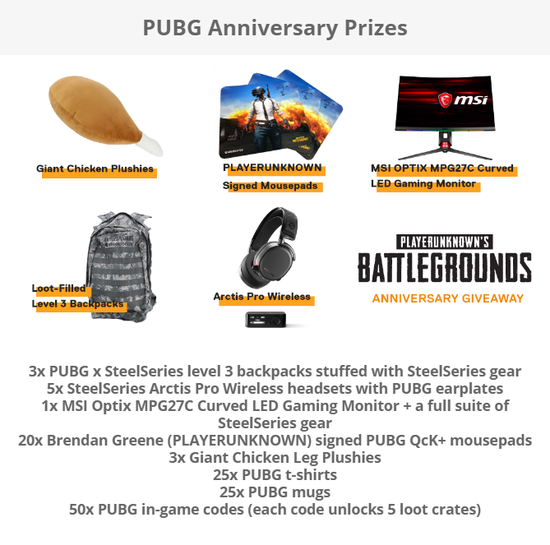 赛睿《绝地求生》周年庆活动奖品极其诱人,包括: