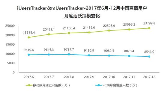 直播行业正在迈入看重质量而非数量的阶段。根据研究公司艾媒咨询统计的数据,截至2017年12月中国在线直播月活跃用户合计3.23亿,相比2016年和2017年上半年增速明显放缓。虽然在线直播用户在全国所有7.72亿网民规模中还不到一半,但增速放缓预示着行业需要准备进入存量市场的打算。