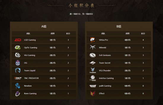 Newbee和LGD在第三轮上演中国内战,Newbee面对LGD的陈和兽王带动的节奏毫无办法,LGD轻取胜利。iG则在与VP的比赛中前期占据优势,但在中期没能把握局势,修补匠经济较差没能打出作用,VP再下一城。