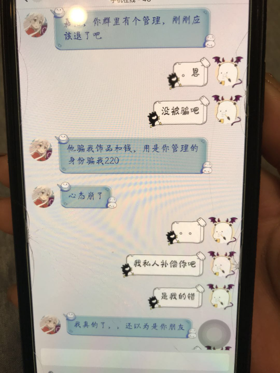 出乎预料的是,Ashe佳怡不久后收到两个粉丝的私聊,纷纷向他指明自己被群里的一位管理员骗了钱。
