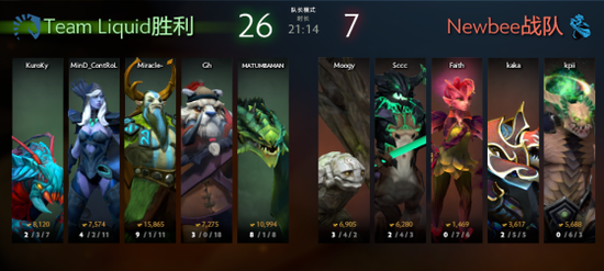 18分钟Liquid冲上NB高地,破掉中路还要团灭。Liquid一塔未掉。随后液体干净利落的再次团灭了Newbee,赢得了比赛。Newbee加赛一场未胜。