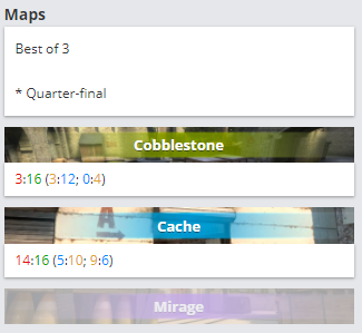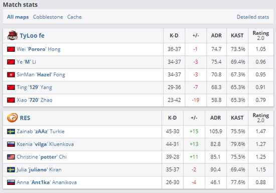 但在四分之一决赛是她们遇见了本次比赛的夺冠热门juliano带领的REZ——前Secret战队。在首张地图Cobblestone以4:16落败的情况下,图二Cache相对打的更加胶着,只可惜中国姑娘还是没能咬住比分,以14:16落败,无缘之后的半决赛。
