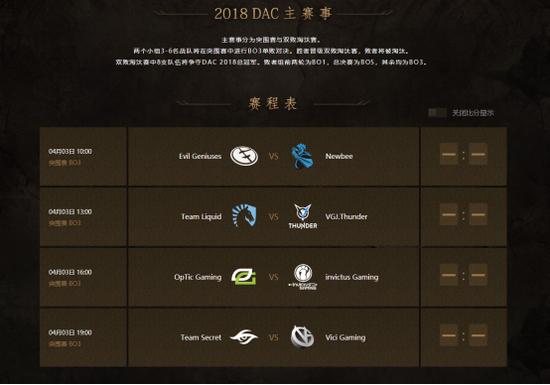 A组 TNC和LGD直接晋级,OpTic、Liquid、VG和Newbee需要进入突围赛。B组VP和Mineski直接晋级,EG、Secret、Ig和VGJ.T晋级突围赛。突围赛(BO3)将在4月3日进行,欢迎玩家届时前往东方体育中心,观看比赛。