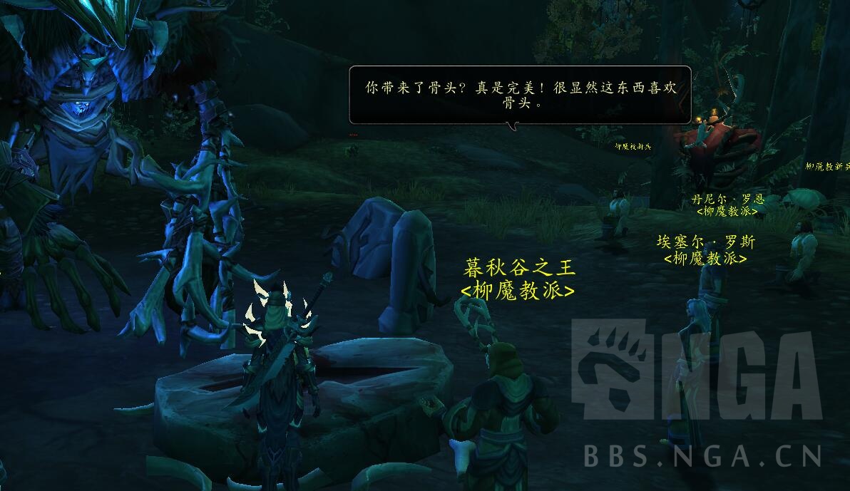 当我到达暮秋谷时,这些异教徒正在对一直柳树精做祭拜,而且领头的正是暮秋谷之王,为了不暴露身份,我装作一名慕名而来企图入教的信徒 伟大的圣光请原谅我 混入到了他们之中。