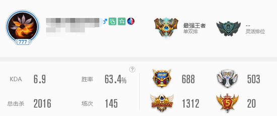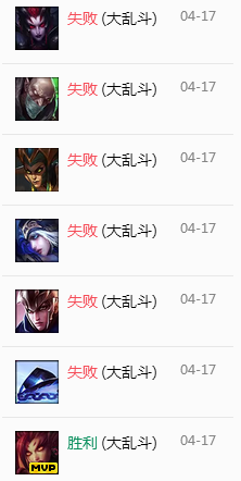 这位玩家是影流区的一名最强王者,但他似乎对大乱斗更加情有独钟。仅4月16日一天,他就打了30局极地大乱斗。