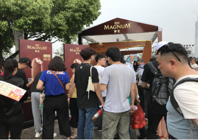 从三阳门进入园区,走近主舞台附近,就可以见到梦龙和必胜客两家展位正在为游客们提供冰淇淋及饮品。在如此炎热的夏日,需要冷饮为观众们降降温冷静一下,毕竟主舞台上正在登台的主播总会让他们情绪激动,血液飙升。