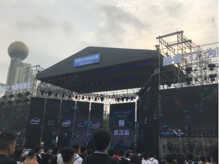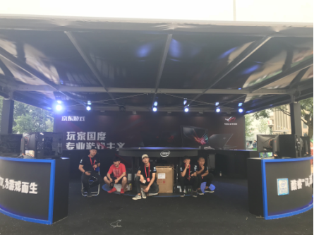 整个斗鱼嘉年华中,品牌舞台最大的是Intel英特尔对战舞台,一进一阳门就能看见英特尔舞台前站满了人,围观台上正在对战英雄联盟的玩家,大屏幕中是实时比赛画面,并配有专业解说专业镜头切换等。所有的标准都是专业赛事标准,但参赛的可都是观众水友,每个在台下观看的人都是玩家,大家都跃跃欲试上台比拼。京东游戏也在舞台对面展示了合作品牌产品,可供观众使用体验。