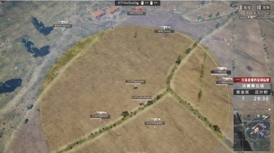 决赛圈刷在了地形非常平坦的地方,掩体非常少,最后IFTY剩下四人,OMG战队三人和NG战队一人。NG战队的选手一直躲着没有开枪,IFTY大哥开车撞到OMG一人后将其团灭,随后NG剩下的一人难抵四人。IFTY成功吃鸡。