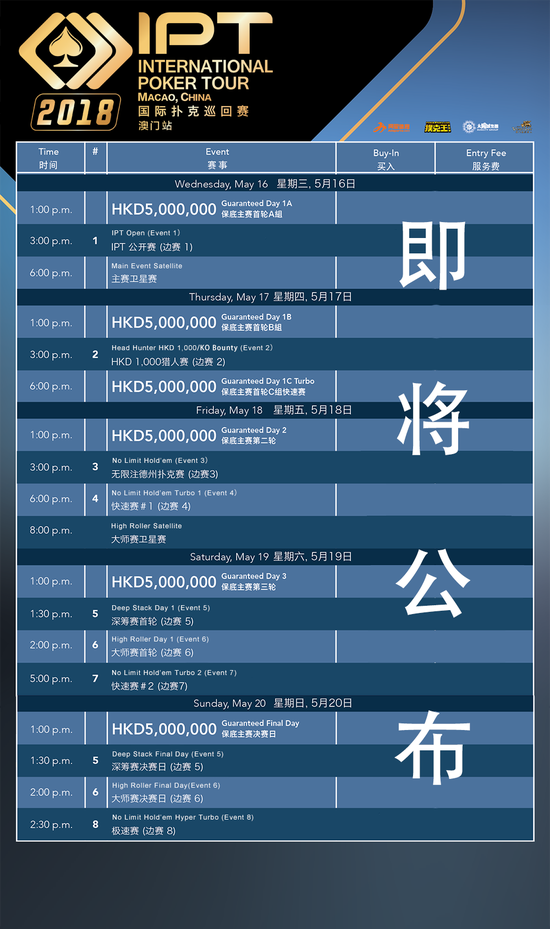 打头阵的第一场赛事将于5月16日——5月20日坐落澳门威尼斯人,总奖励超千万!