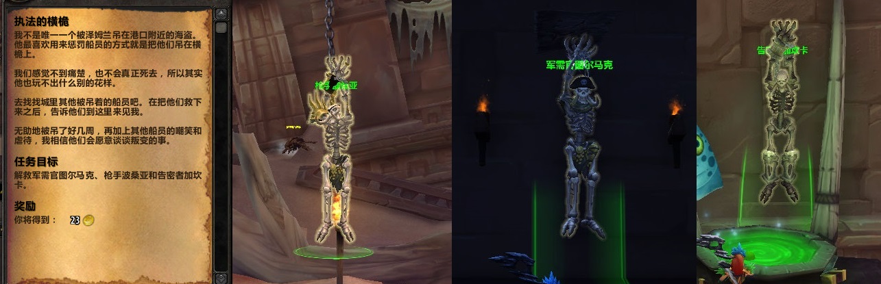 突然有人叫了我一声,我一回头,一个巨魔骷髅被钉在柱子上,竟然还能说话。他的名字叫做 大副加博亚