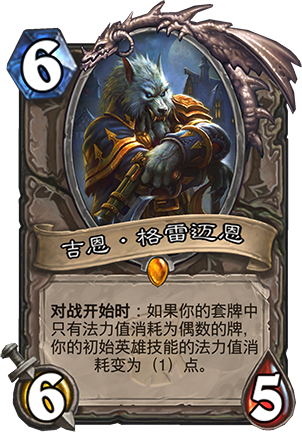 奇数与偶数套牌——构筑一套含有吉恩·格雷迈恩或噬月者巴库的套牌来强化你的英雄技能,但你只能使用奇数或偶数法力值消耗的卡牌。