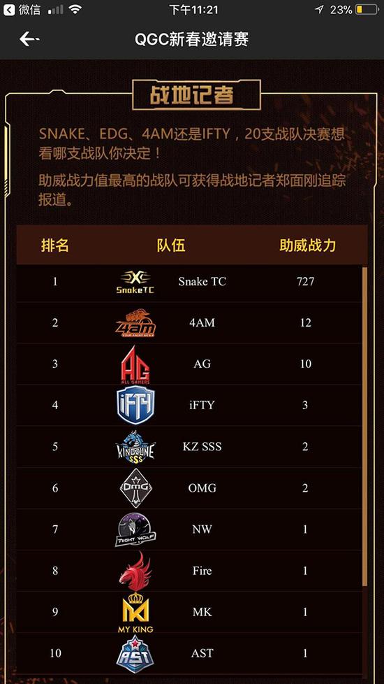 除了全景地图直播间,此次QGC新春邀请赛总决赛还将加入第三个直播频道,这个频道的OB位将会像随军战地记者一样全程只跟随一支战队的脚步,为观众全方位呈现这支战队在比赛中的所有细节,让你知晓大神们在比赛中是怎么指挥和沟通的。如果这支战队在比赛结束前就被团灭,战地记者OB位将会切换到团灭这支队伍的那个战队直到比赛结束。而这个战地记者视角所直播的初始战队将由所有观众投票选出,不想错过喜欢的战队的每一个画面?那就快来投票吧!投票地址:Egame.qq.com/pubg