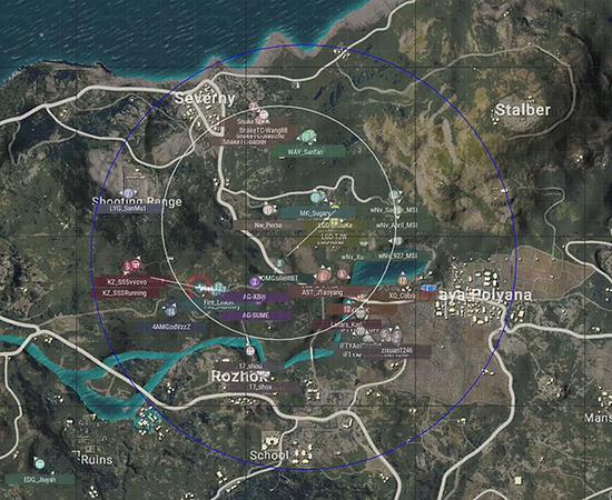 可以看到,最后的毒圈依旧处在P城下方不远处,可以说是对17战队颇为有利。