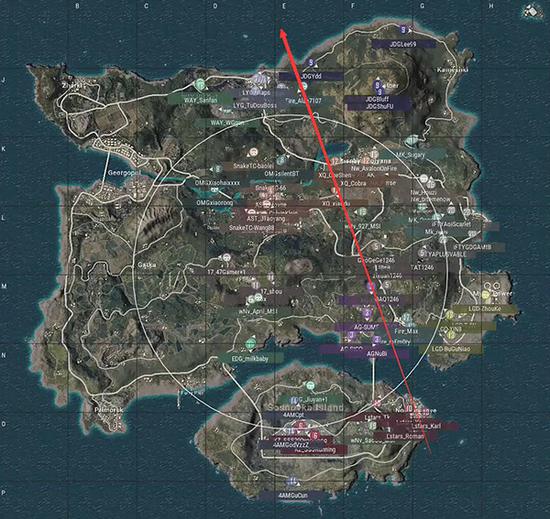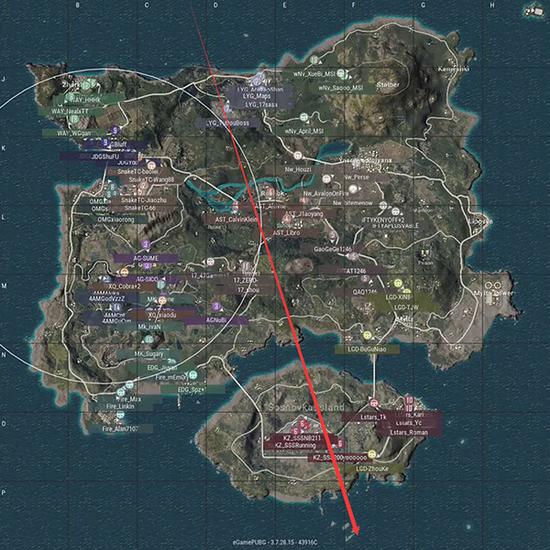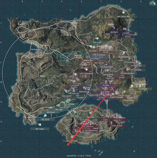 比赛异常激烈,最终决赛圈刷在了大陆南方海岸,由于该地形没有太多掩体,多数战队在跑毒进圈时损伤惨重!