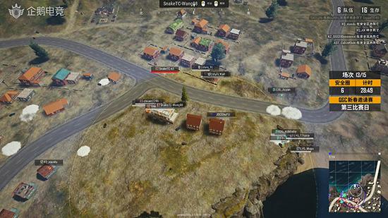 而毒圈最终依旧刷在靠海边,图中房区随后也刷在了毒圈内。所有战队被迫转移向海边。