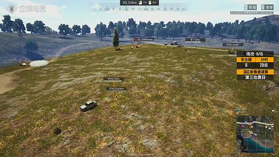 如图,本局安全区刷在了地图西边海岸,此时所剩战队已经不多。