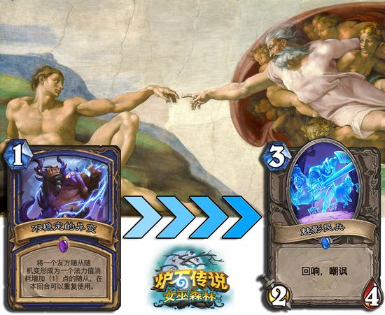 “回响”词缀的雏形起源于《冰封王座的骑士》盗贼英雄牌,微调后成为萨满的职业牌不稳定的异变——“将一个友方随从随机变形成为一个法力值消耗增加(1)点的随从。”这没有什么特别的,而更关键的部分,在于后面这句话——“在本回合可以重复使用。”虽说萨满目前表现疲软,但对这张牌却是有口皆碑,可谓强度和娱乐性兼备。