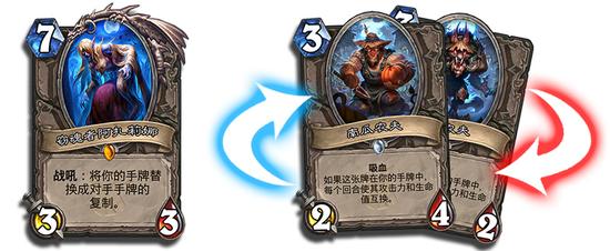 《女巫森林》的其他卡牌,比如中立传说随从窃魂者阿扎莉娜,复制对手手牌,怎么说呢?各种评论都认为神恩术会进荣誉殿堂,因为只要有这张牌存在,圣骑士就能进行猖獗的快攻,疯狂扔牌后神恩术一波补充,这战术是没办法应对的。现在窃魂者阿扎莉娜,让快攻在8费后有了继续作战的可能性,如此看起来神恩术也安全了。