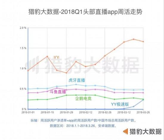 猎豹大数据日前发布2018Q1排行榜,盘点一季度移动互联网30余个细分领域APP的表现。其中,直播平台因上市潮备受关注,虎牙直播以绝对优势继续领跑游戏直播市场,在整个行业流量收割的优势已经十分明显。
