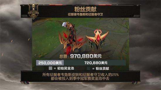 玩家贡献的奖金就是玩家们购买今年的季中冠军赛限定皮肤,征服者韦鲁斯的钱的一部分会投入到季中冠军赛的奖池中~