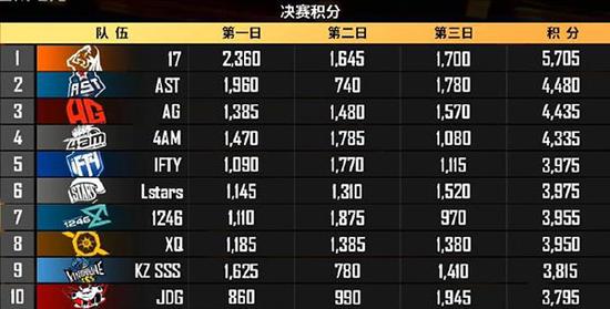 17每名队员的表现没有让粉丝和观众失望,17shou决赛圈以一己之力对阵AST打法凶悍的四人,成功击倒三人,这段精彩操作惊艳众人。包括在总决赛三连吃鸡!最后一局,成为他们的投掷物秀场,英勇投弹手,爆破鬼才,论坛上的各种称呼已经足够能表现他们当晚的精彩表现。
