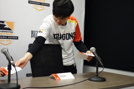 龙队稍后进来,他们这次的赛后采访是由多种语言接力转译完成的,比如针对Geguri的问题需要经过英中韩三语的翻译,回答之后再经过一次三语的转译,似乎也从侧面反映了目前队内的沟通问题,记者直接使用中文的提问及国内选手的回答除外。