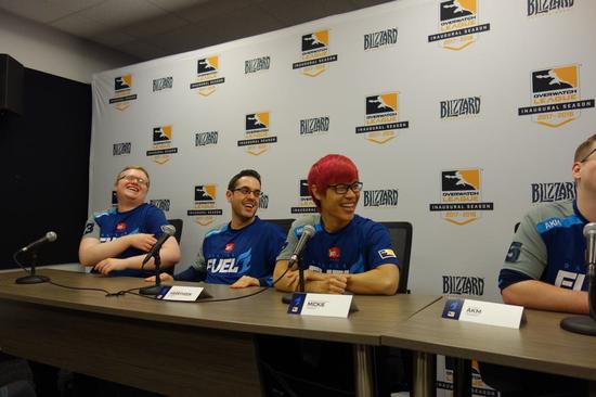 比赛打完了,龙队遗憾落败,按照联赛流程,两队都将进行10分钟左右的赛后发布会。达拉斯燃料队因为有Mickie这个活宝加上赢了比赛,所以发布会上欢声笑语,左侧搞笑三人组和右侧严肃组形成鲜明对比,Mickie,aKm和Seagull这场比赛里都拿了自己不怎么常用的英雄,但是他们都表示没什么问题,毕竟比赛赢了。Mickie最后再次推广自己的直播间结束了采访。
