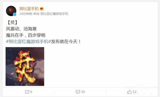 值得一提的是,今日海报游戏为《荒野行动》,网易游戏出品的射击求生手游,能,带给玩家畅快舒适的竞技体验。看了努比亚手机官方微博的宣传语后,相信玩家也会期待能通过红魔游戏手机“百步穿杨”,从而享受顺利“吃鸡”的乐趣!