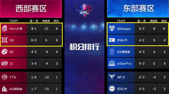 从积分榜来看,上述4支战队分别处于东西赛区的前两名,拉开身后第二梯队的队伍不少距离。而且有趣的是,QG.happy、XQ和RNG.M竟都同属触手直播平台!
