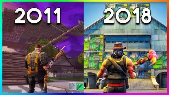 游戏正式发售后,国外玩家还做了不少《堡垒之夜》2011年版本 VS 2018年版本的对比