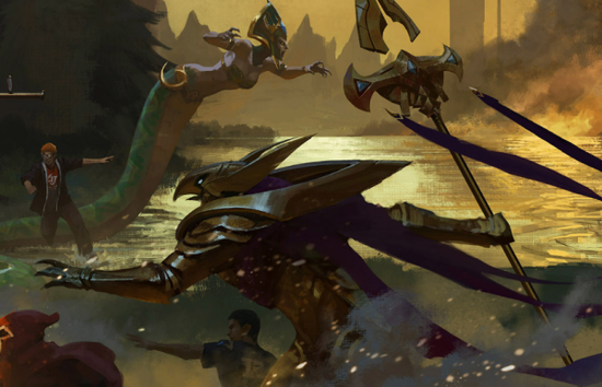 经典战役,2015MSI季中冠军赛,EDG和SKT的第五场,Pawn将军的莫甘娜对战Faker的诡术妖姬乐芙兰,厂长的寡妇则从侧面支援而来。(不过这里有一点点小小的问题,就是这里的寡妇是重做之后的新形象,而2015年的时候寡妇不是这个样子……不过也可能是官方的刻意安排,毕竟这样的问题应该是不会出现错误的。)