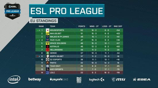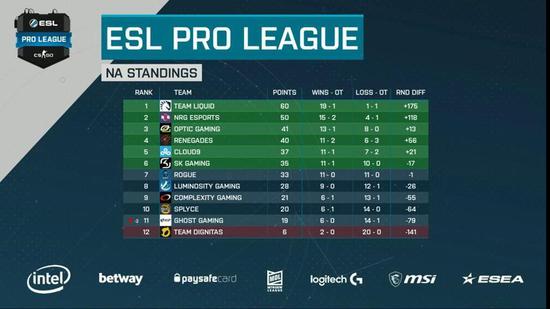 今年的EPL S7增设了亚太区和南美区预选赛,为此EPL季后赛席位也增加至16个,而欧洲区出线名额也从6个增加至7个。欧美区常规赛从2月13日正式开始,经历了14周的漫长赛程后,欧美区最终积分排名如下: