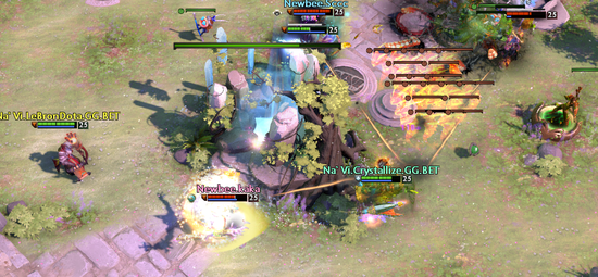 在这几场碾压局中,有“三幻神”残局的三场都没有什么趣味可言。就拿液体打Col为例吧,奇迹哥一场水人一场剑圣,加在一起一共拿了26个人头,自己却没有哪怕一次阵亡。看比赛的过程中,相信又不少观众和笔者一样,都为Col感到着急——赢是不可能赢的,杀他一次也好啊。只可惜奇迹哥捕起鱼来就是能为所欲为,18分钟林肯、22分钟虚灵刀,和这样的水人打正面是没有任何前途的。但也并非每一个水人玩家都像奇迹哥那样,把自己的经济转化为等量的输出。在NB打Navi的第一场比赛中,水晶哥就为我们来了一把错误示范。面对小强、火女、拉比克这种魔法爆发超高的英雄,水晶哥选择了林肯+BKB的出装。但在拿到这两个保命装前,水晶哥已经被NB抓的死去活来。水人刷不了钱也打不了架,NB赢下一个小分。
