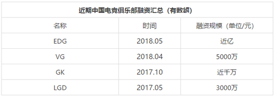 5月4日,EDG电子竞技俱乐部宣布完成近亿元Pre-A轮融资,联合领投方为曜为资本及中投中财主导的中国偶像娱乐产业基金。