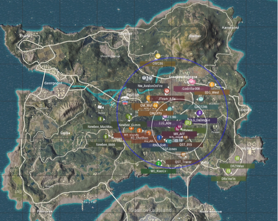 第一局的安全区刷新在了地图的中部地区,涵盖了多个城市连机场也有一部分在圈内,这也意味着在前期基本上不会有大规模的交战发生。而上一局比赛吃鸡的QST战队在和DLG战队前期的遭遇中被连续击杀三人,差点就变成了反向吃鸡的队伍。而DLG战队在击杀QST三人后又将EHOME的一名队员击杀,在第一个圈便已经拿到了四杀。